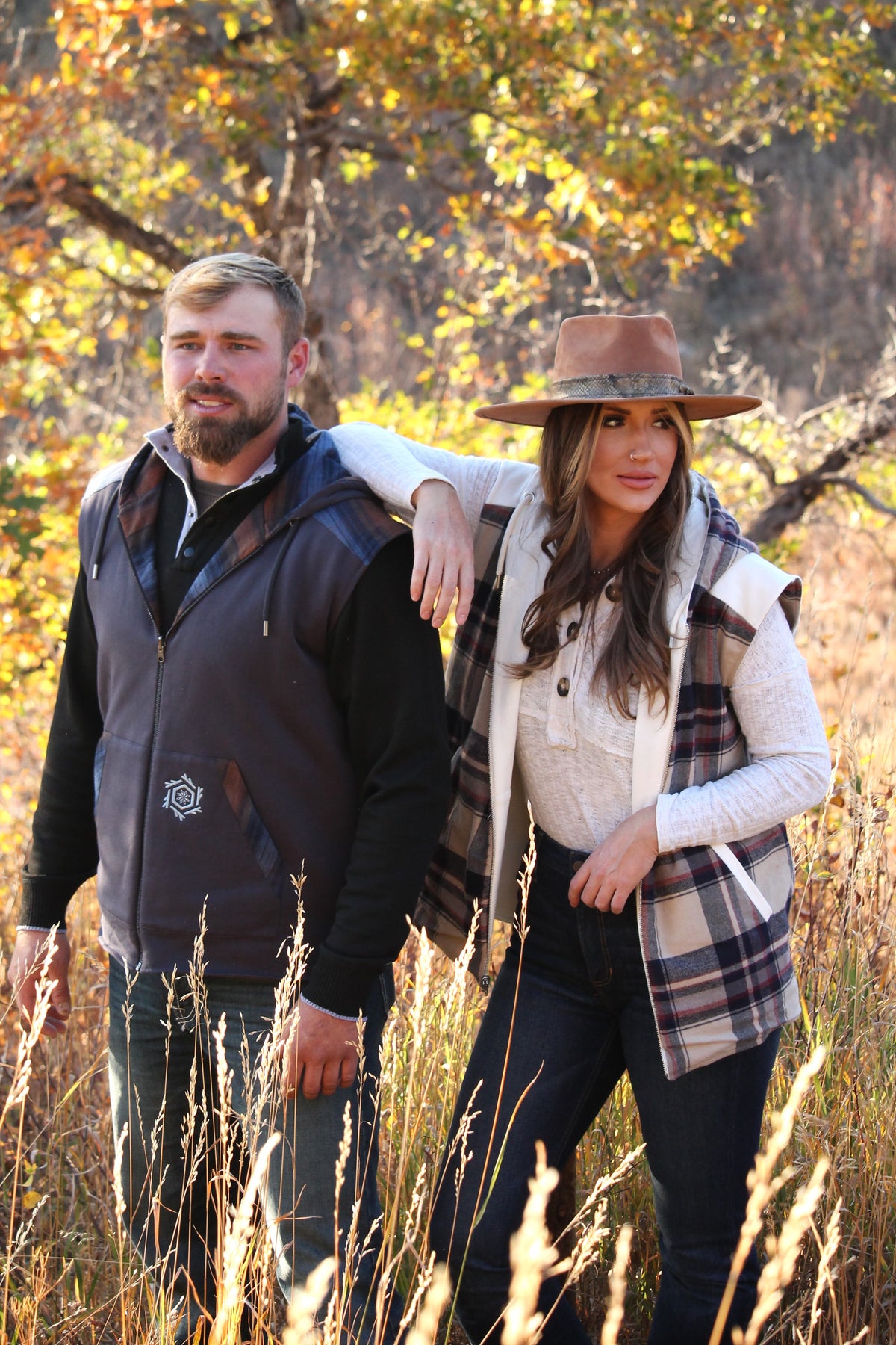 On one side, the vest offers the same functional pockets as our Rustic Retreat Zipped Jacket, including two hand pockets for easy access to your essentials. One of these pockets features a zipped pocket tucked inside, large enough to securely hold your cellphone. Simply flip the vest inside out to reveal the cozy flannel lining, which is complemented by two hand pockets to keep your hands warm on chilly days.